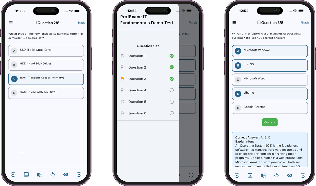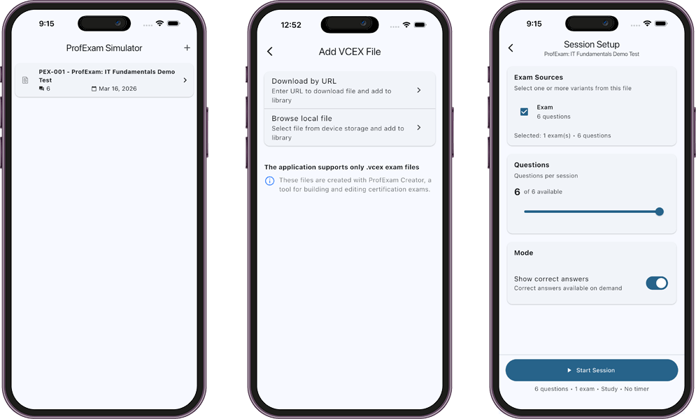 Whether you're studying for certification exams or testing your knowledge, ProfExam Mobile gives you a flexible and efficient way to learn on the go.